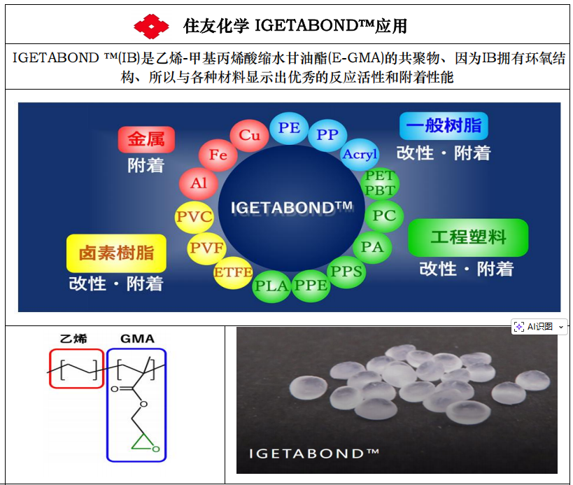 產品名稱:IGETABONDTM(住友化學日本制造,原裝進口塑膠顆粒)