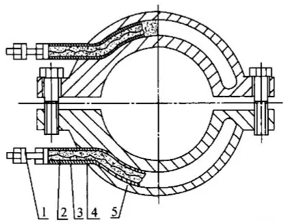 ????????在電阻加熱器中,有一種加熱器叫鑄鋁加熱器,其結構如圖2所示。它是將電阻絲裝于金屬管中,并填進氧化鎂粉之類的絕緣材料,然后將此金屬管鑄于鋁合金中。雖然省去了云母作為絕緣材料降低了生產成本,但是加熱溫度范圍僅為350~370℃。如要求更高溫度,則需要采用鑄鐵或鑄銅加熱器。在實際生產中,頻繁更換加熱器無疑增大生產成本。