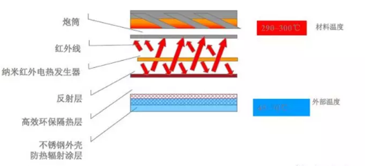 ????????與上面三種傳統(tǒng)加熱方式相比,紅外線加熱是近年來發(fā)展起來的一項新的加熱技術。加熱原理如圖4。