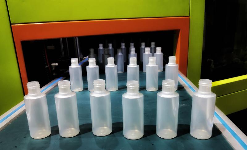 ????????本屆展會(huì),精業(yè)機(jī)器展出了全自動(dòng)一步法“注-拉-吹”機(jī)WISB-88AS,配合一出六腔的PET模具,在現(xiàn)場(chǎng)生產(chǎn)化妝品包裝中最常見的100ml精華液瓶,吸引了諸多目光。