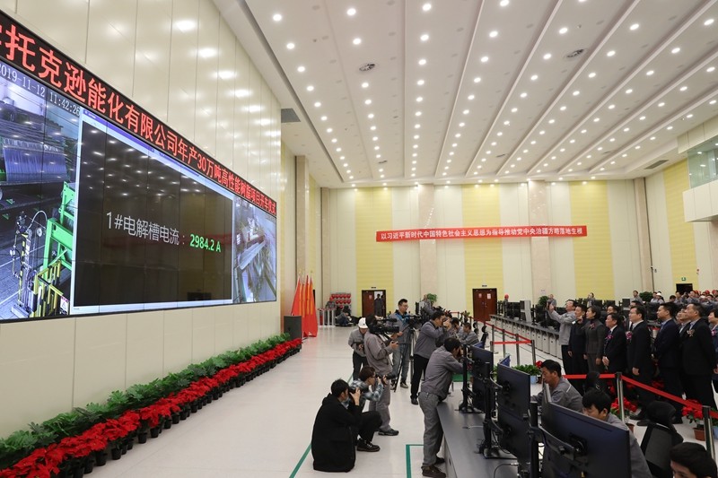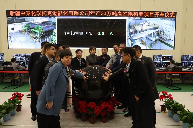新疆中泰化學(xué)托克遜能化有限公司年產(chǎn)30萬噸高性能樹脂項目開車儀式現(xiàn)場