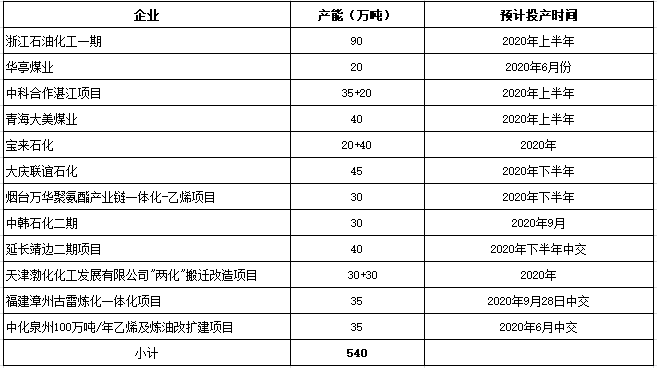 ????????(備注:因以上裝置多為計劃投產,受國內經濟及環保等各方面因素影響,投產計劃存在推遲可能)
