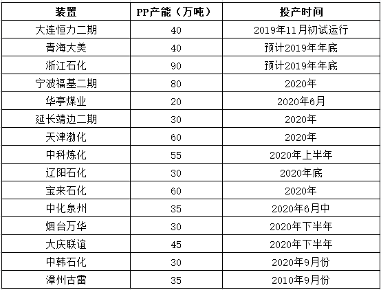 ????????據(jù)了解,目前大連恒力二期聚丙烯裝置預(yù)計(jì)下個(gè)月試運(yùn)行,青海大美、浙江石化等裝置年底前或?qū)⑼懂a(chǎn)。明年投產(chǎn)熱情依舊,寧波福基二期、華庭煤業(yè)、天津渤化、中科煉化等十幾套裝置產(chǎn)能集中釋放,可以說未來供應(yīng)壓力山大。