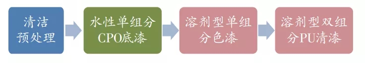 ????????隨著CPO和PO技術的發展,逐漸出現水性CPO和水性PO的底漆,可降低VOC的排放,其工藝流程如圖4所示。