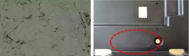 ????????優化成型工藝改善浮纖問題。較高的注塑溫度和模具溫度,較大的注塑壓力和背壓,較快的注塑速度,較低的螺桿轉速,都可以一定程度改善浮纖問題。