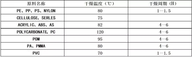 ????????五、塑料原料干燥溫度參考表?