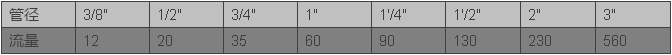 ????????流量與管徑之間的關(guān)系表:
